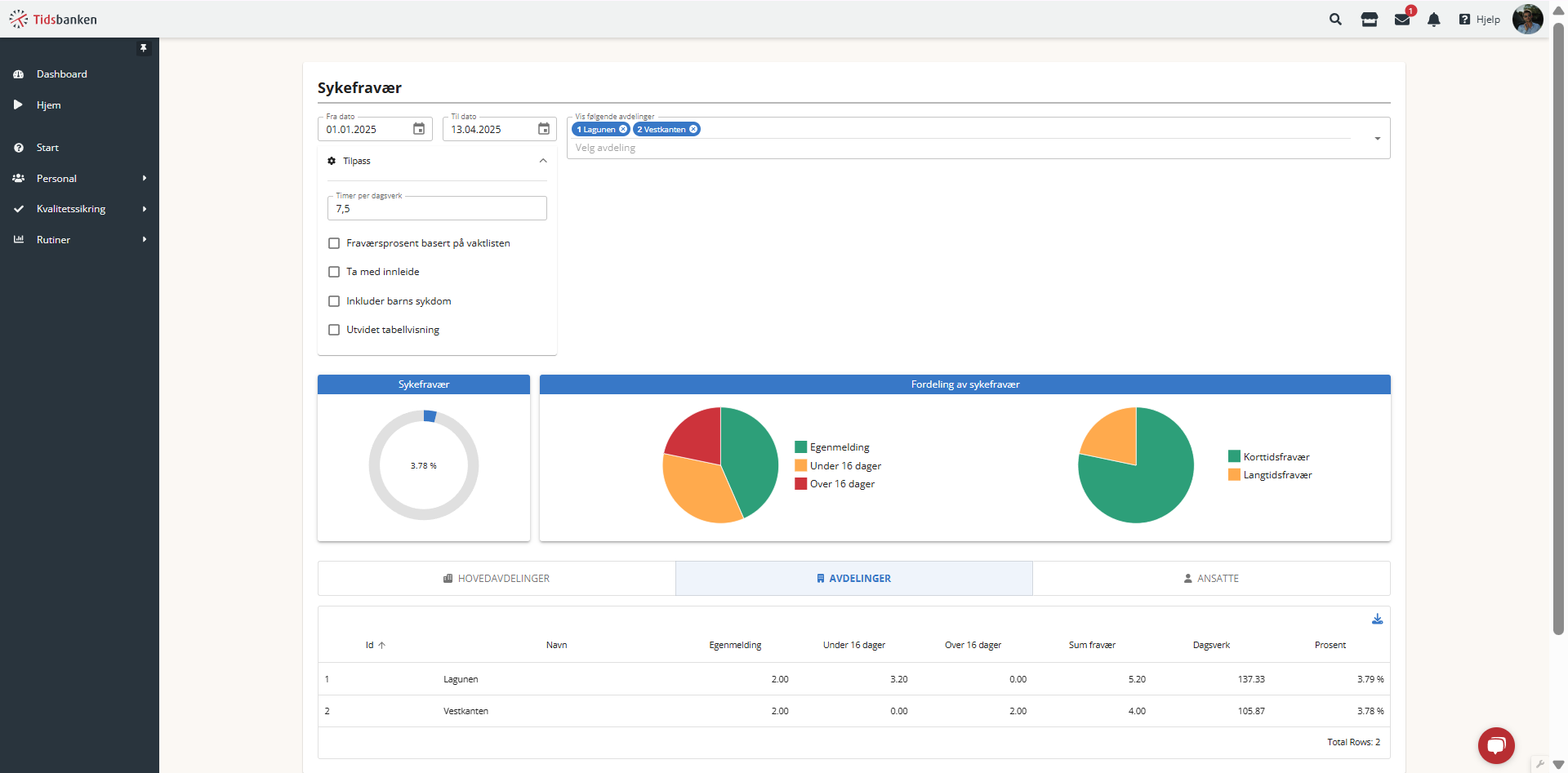 Forbedret avviksstatistikk i Tidsbanken gir bedre oversikt, med mulighet for å sammenligning over flere år.